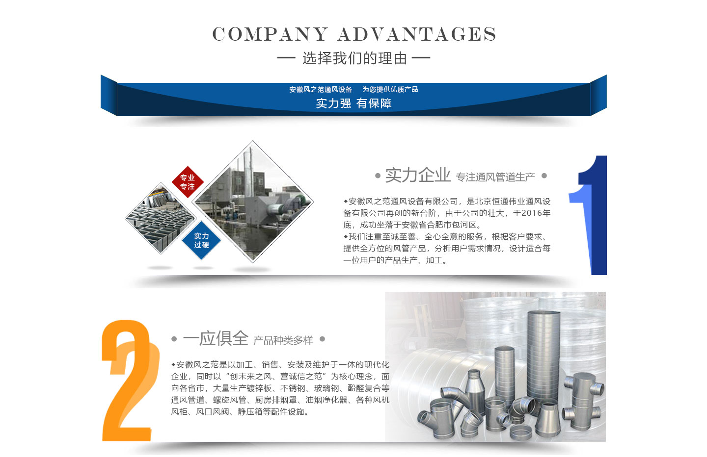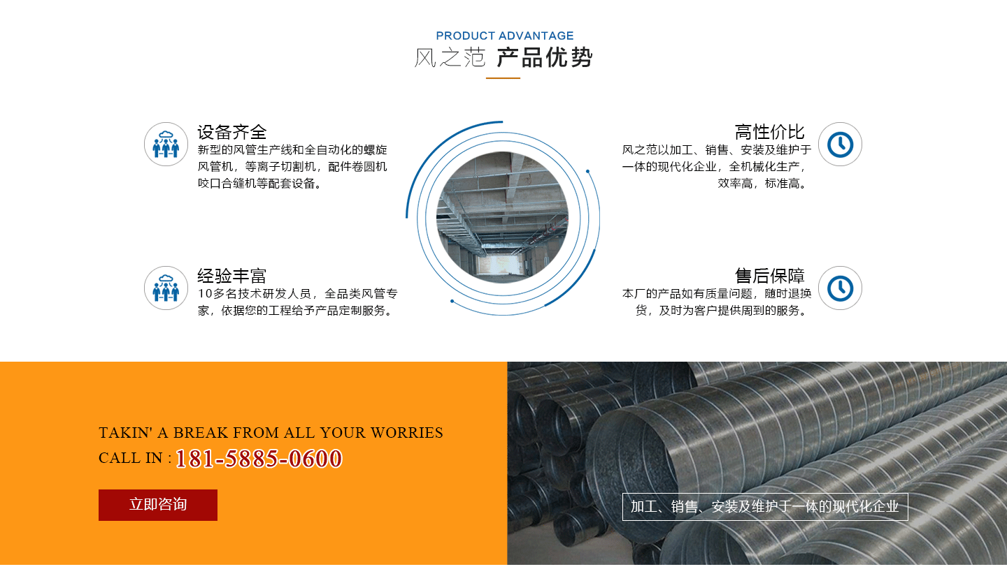 安徽風(fēng)之范通風(fēng)設(shè)備有限公司,是北京恒通偉業(yè)通風(fēng)設(shè)備有限公司再創(chuàng)的新臺(tái)階,多年來(lái),公司員工憑著“誠(chéng)信敬業(yè)、團(tuán)結(jié)拼搏、勇于開(kāi)拓、務(wù)實(shí)進(jìn)取”的企業(yè)精神,先后承接了多項(xiàng)重點(diǎn)工程項(xiàng)目,使公司健康穩(wěn)步發(fā)展?,F(xiàn)由于公司的壯大,業(yè)務(wù)的拓展,又于2016年底,成功坐落于安徽省合肥市包河區(qū)。本公司生產(chǎn)設(shè)備精良,技術(shù)力量雄厚,質(zhì)保體系完善!讓用戶(hù)體驗(yàn)到,貼心的服務(wù),無(wú)憂(yōu)的售后!風(fēng)之范是以加工、銷(xiāo)售、安裝及維護(hù)于一體的現(xiàn)代化企業(yè),同時(shí)以“創(chuàng)未來(lái)之風(fēng)、營(yíng)誠(chéng)信之范”為核心理念,面向全國(guó)各省市,大量生產(chǎn)鍍鋅板、不銹鋼、玻璃鋼、酚醛復(fù)合等通風(fēng)管道、螺旋風(fēng)管、廚房排煙罩、油煙凈化器、各種風(fēng)機(jī)風(fēng)柜、風(fēng)口風(fēng)閥、靜壓箱等配件設(shè)施。廣泛承接商場(chǎng)、工廠(chǎng)、酒店、寫(xiě)字樓、地下室等,消防排煙工程、除塵凈化工程、室內(nèi)通風(fēng)工程、暖通空調(diào)工程、廚房排煙凈化工程。我們力求上進(jìn),追求,歡迎各界人士技術(shù)指導(dǎo),經(jīng)濟(jì)合作,共創(chuàng)美好明天!